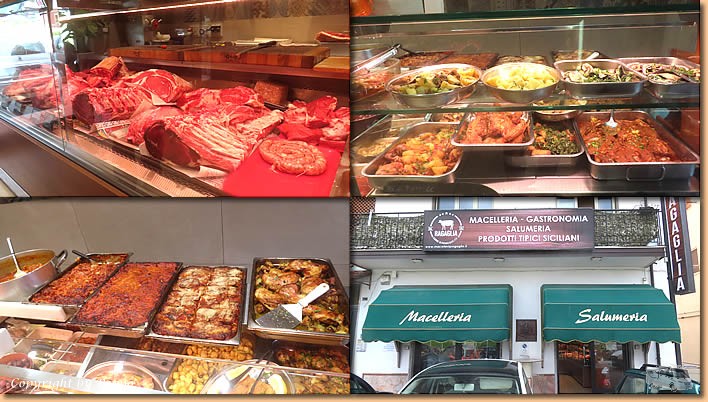 | In kürzester Zeit ist alles okay, ein neues Teil ist eingebaut und wir sind wieder auf dem Weg zum Stellplatz. Für's verspätete Mittagessen sorgt heute die Macelleria in der Nähe. Schmeckt ausgezeichnet und mit 6 Euro pro Portion obendrein noch preiswert. |