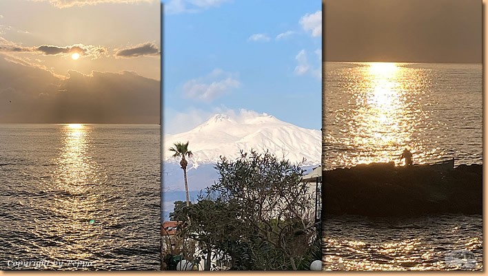 | Morgenrunde, Blick auf den Ätna, frühstücken und dann planen wir den Museumsbesuch. |