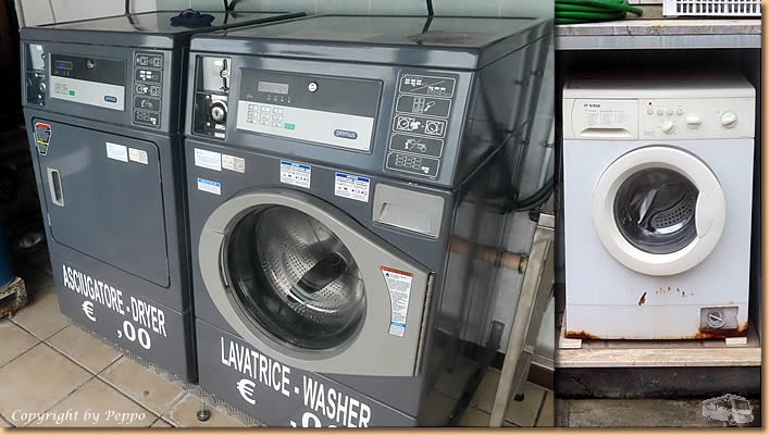 | Zuerst ist aber eine Maschine Wäsche eingeplant. Helga holt den Schlüssel für die Waschküche, wir füllen die Maschine und dann kommt es wieder einmal anders als man denkt.Der Münzeinwurf funktioniert nicht und somit geht gar nix. Der Chef wird zu Hilfe gerufen doch leider kann er das Problem auch nicht lösen. Er bietet aber netterweise an, die Wäsche in seiner 20 Jahren alten Privatmaschine zu waschen. Alles gut, aber auch diese läuft nicht ganz rund. Nach fast 3 Stunden beendet sie endlich das Programm und wir können zum Trockner wechseln. |