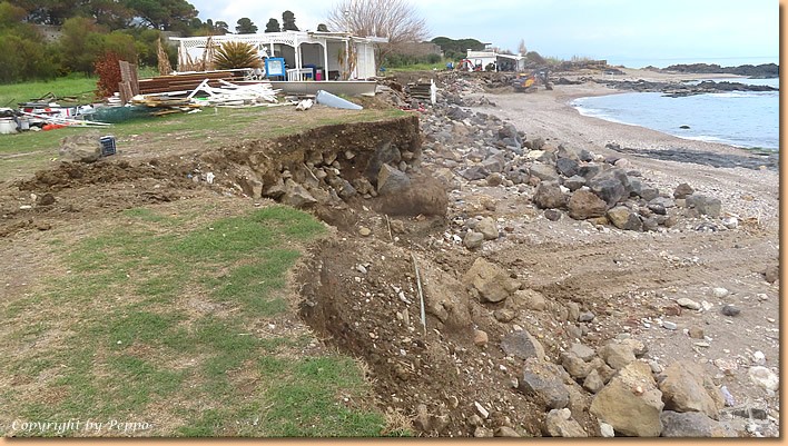 | Das dauert noch gut eine Stunde, schlussendlich ist es vollbracht. Mit dem "Projekt Wäsche" bringen wir heute den halben Tag hinter uns und daher reicht es heute nur noch für eine Minirunde an den total verwüsteten Badestrand. |