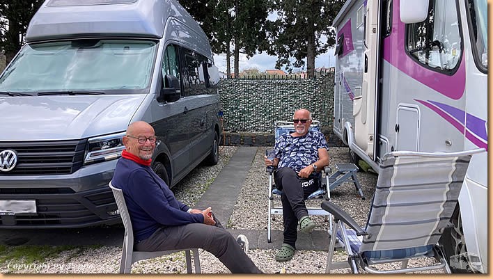 | Danke Josef für den Tipp und auch an die netten Camper die uns heute mit Ratschlägen zur Seite gestanden sind. Am Abend werden natürlich auf's gute Gelingen ein (oder zwei) Gläser getrunken, alles gut gegangen, ciao bis morgen! |