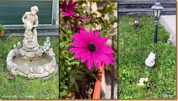 | Nach ca. 6 km auf und ab sitzen wir auf der Piazza und geniessen ein kühles Bier. Ein bisschen was zum Fotografieren finden wir auch heute wieder, ein Blick zum Himmel sagt uns allerdings, dass es Zeit für den Retourweg ist. Alles bestens, das Timing stimmt, nach der Dusche und keine 10 Minuten im Womo und die ersten Tropfen fallen vom Himmel. Die Füsse haben Pause, die Mägen sind zum Füllen bereit, wir freuen uns auf einen gemütlichen Fernsehabend. |