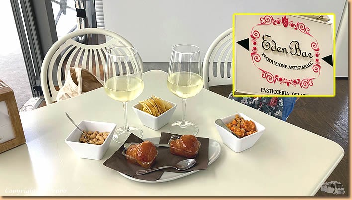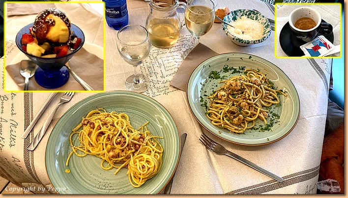 | Ein bisschen was Neues entdecken wir immer und schlussendlich gibt's nach dem Einkauf in unserer Trattoria den üblichen Aperitivo. Der Nachmittag verläuft gemütlich vorm Womo und da sich der ziemlich warme Wind noch in Grenzen hält geniessen wir die Zeit im Freien. Am Abend wird's ein wenig stürmischer was uns aber eigentlich nichts mehr ausmacht. |