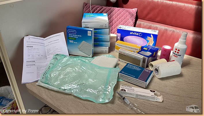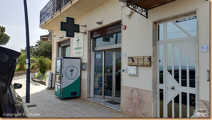 | Natürlich hat Helga eine unruhige Nacht hinter sich, zum Frühstück gibt's einen ordentlichen Tablettenmix und dann machen wir uns auf in die Stadt. Aus unserer Lieblingsbar wird heute nichts, wir nehmen stattdessen die Farmacia ins Visier. Wir werden freundlichst behandelt und kommen mit prall gefüllten Taschen wieder retour. Hier muss man sich nämlich die Medikamente, Tetanusauffrischung und Verbandsmaterial selbst in der Apotheke kaufen. |