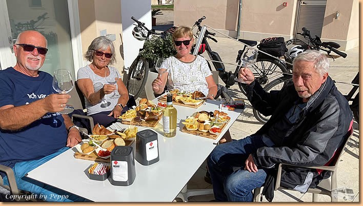 | Die Räder stehen in Fahrtrichtung, auf geht's nach Marina di Ragusa. Diverse Einkaufszentren werden neben der Vinothek anvisiert, volle Taschen und ein Einkehrschwung am Hafen stehen natürlich am Programm. Wir geniessen die Sonne, vino und alles was dazugehört, einfach ein schöner Tag. |
