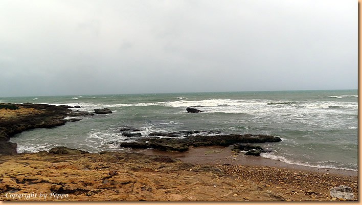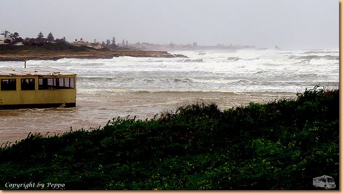 | Zyklon Harry soll auch gewaltige Wellen mit bis zu 9m Höhe an Land bringen, davon werden wir hoffentlich verschont bleiben. Aus diesem Grund werden die Camper vorne aufgefordert zu uns nach hinten zu kommen, der Parkplatz ist bereits ziemlich voll. Sich verrückt zu machen nützt auch nichts, es kommt wie es kommt, wir hoffen einfach das Beste. |