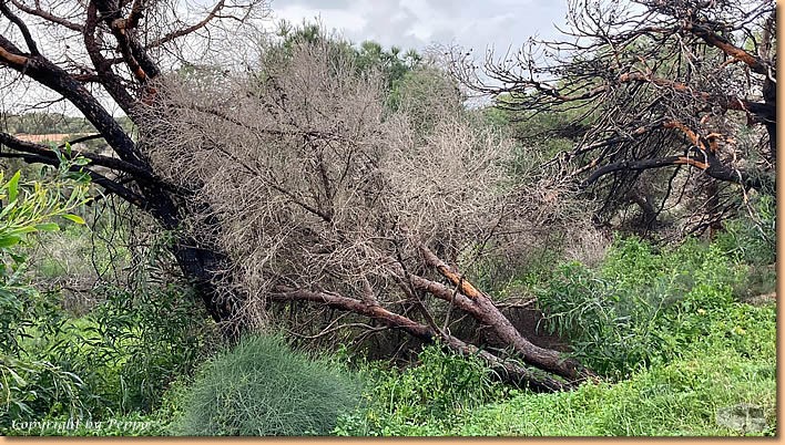 | Es ist alles wieder gut, wir haben Zyklon Harry ohne Schaden überstanden. Zum Glück hat es Punta Braccetto nur am Rande getroffen, andere Orte in der Nähe hatten nicht so viel Glück und die Verwüstungen sind enorm. Auch im "Zauberwald" hält sich der Schaden in Grenzen. |