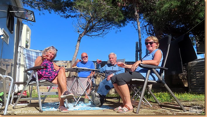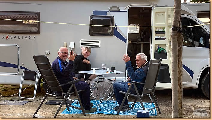 | Kein Regen, kein Wind, das heisst, daheim gibt es ein gemütliches Zusammensitzen zuerst mit Luciano und später mit Ulrike und Wolfgang und wir hoffen doch, dass es in den nächsten Tagen so bleibt. Ciao, bis morgen! |