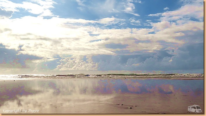 | Wieder ein Tag mit dem wir wettertechnisch sehr zufrieden sind. Am Vormittag eine Strandrunde, dann geniessen wir vorm Vorzelt die Sonne. |
