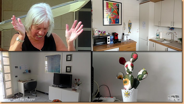 | Sie wohnt seit ein paar Tagen ganz in der Nähe in einer Ferienwohnung und fühlt sich sehr wohl. Perfekt eingerichtet, alles ordentlich und sauber und die monatliche Miete ist mehr als okay. Herzlichen Dank für Speis und Trank und für die netten gemeinsamen Stunden. |